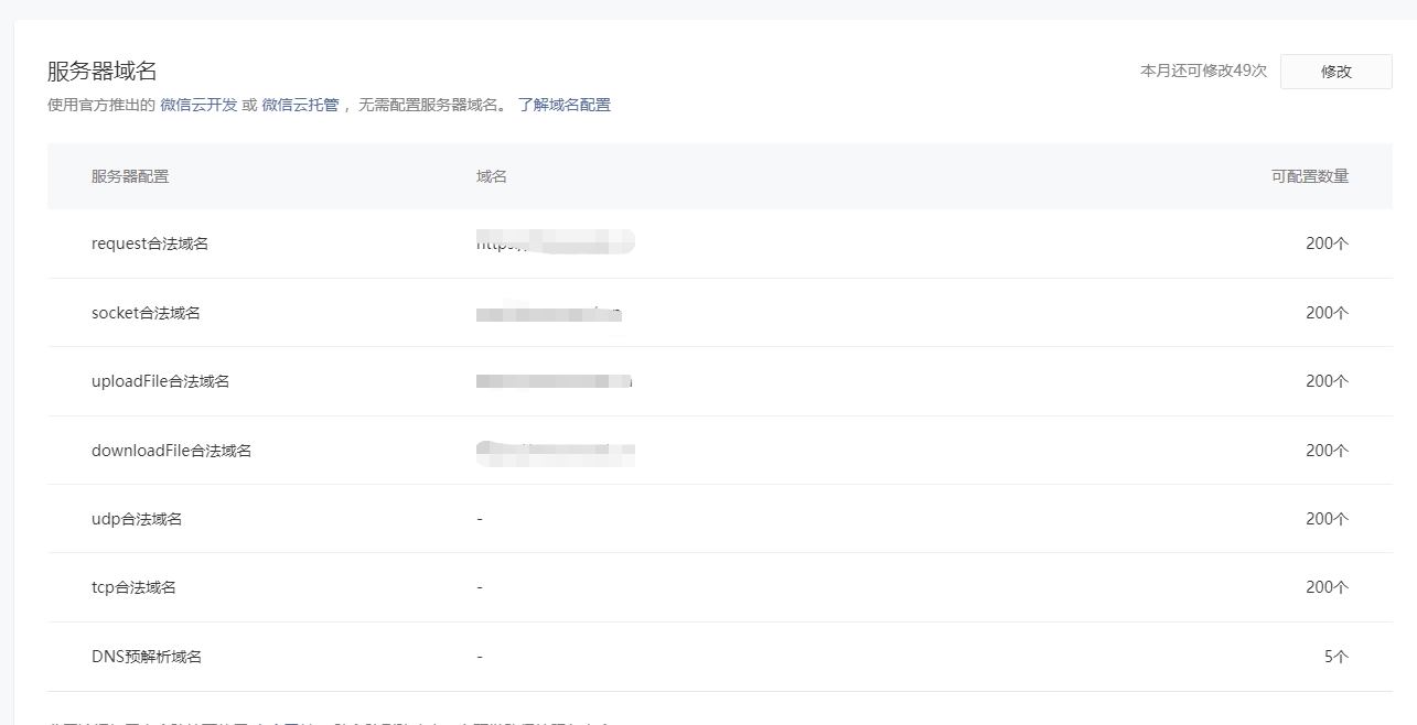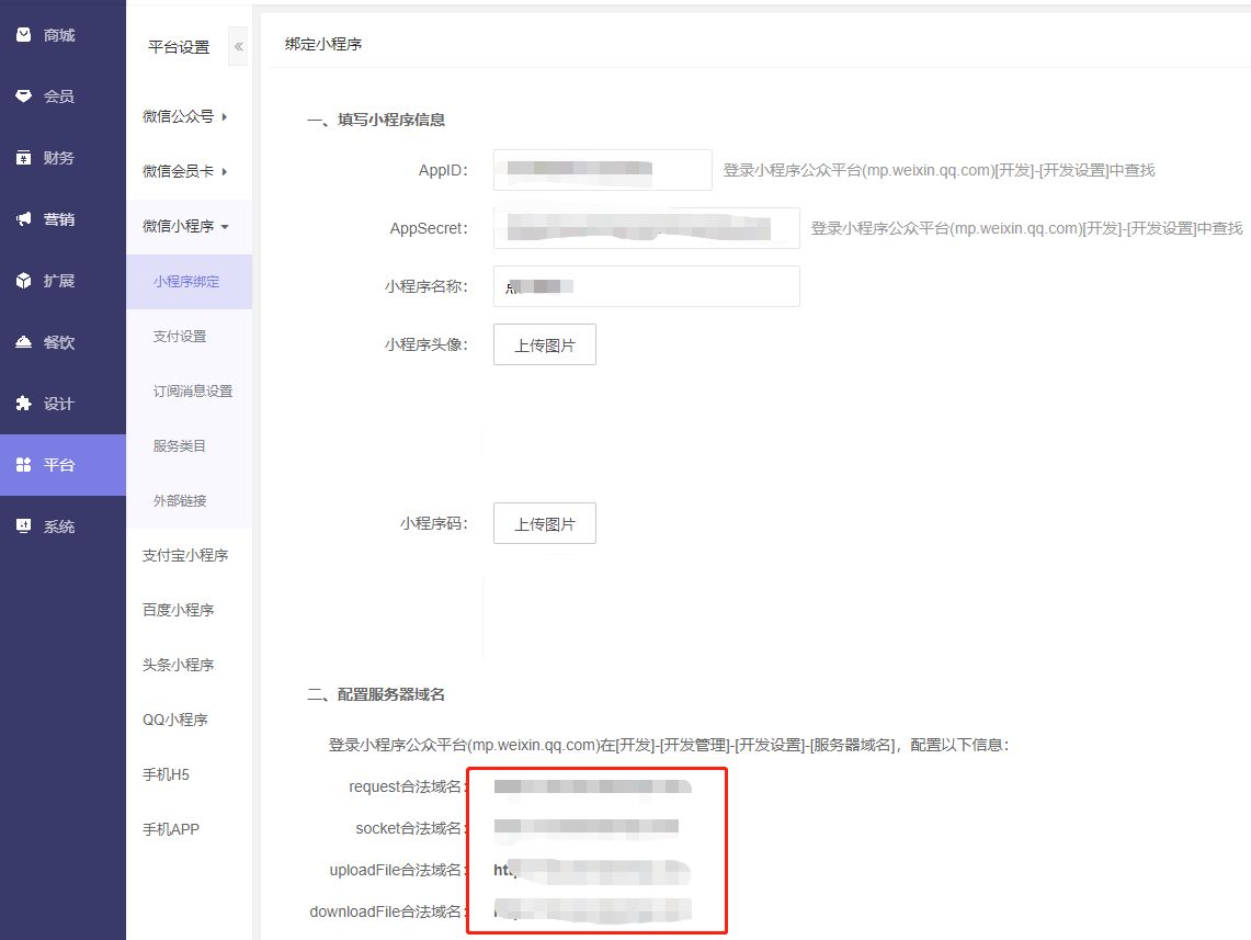 手动绑定的微信小程序,平台-微信小程序-小程序绑定-配置服务器域名,重新设置