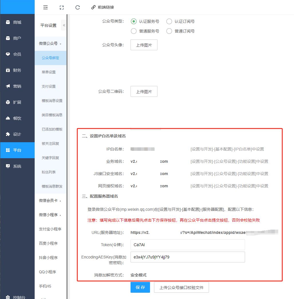 手动绑定的公众号,平台-微信公众平台-公众号绑定-设置IP白名单及域名、配置服务器域名,重新设置
