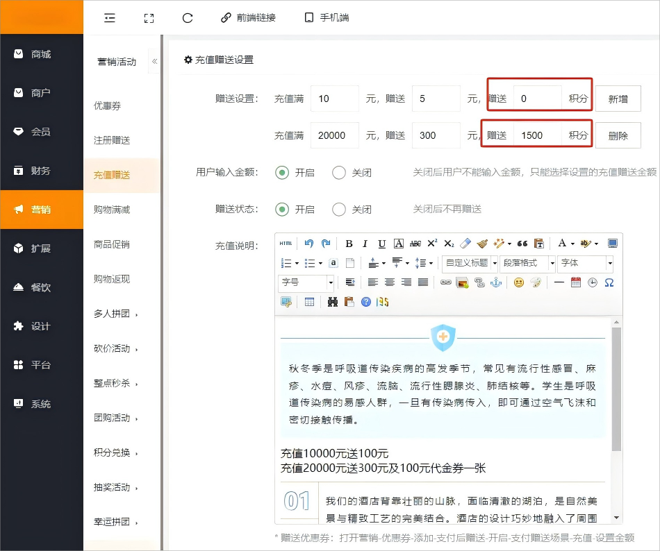 营销--充值赠送