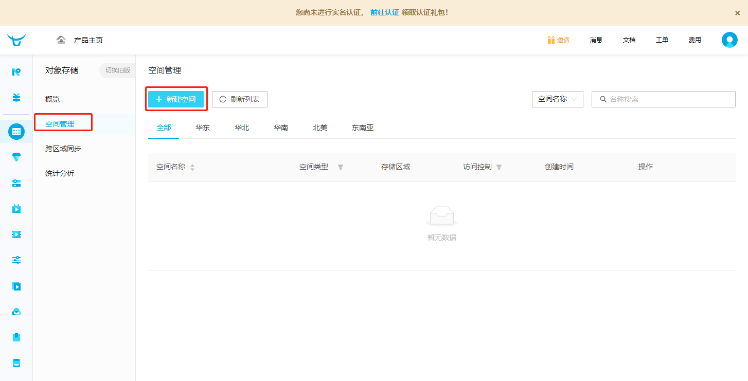 1、打开七牛云后台,选择七牛产品-云产品-对象存储-空间管理-新建空间,存储区域选择当前服务器所在的区域,访问设置选择公有。