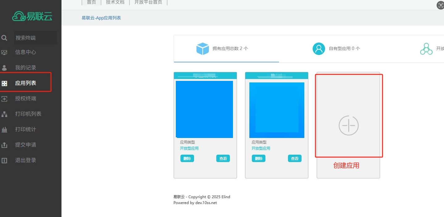 请在易联云开放平台注册并创建开放型应用