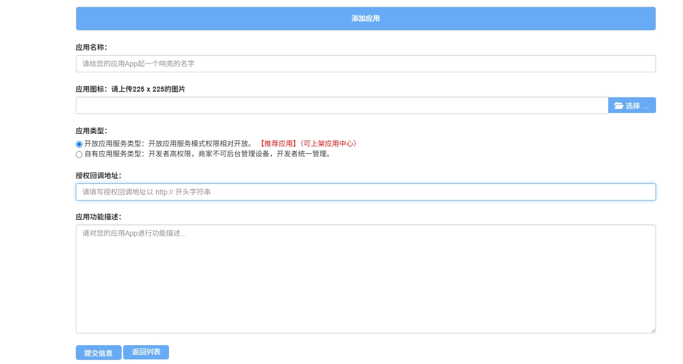 易联云开放型应用设置