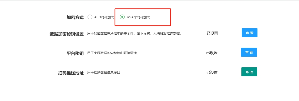 加密方式选择:RSA非对称加密,复制控制台里面的扫码推送地址