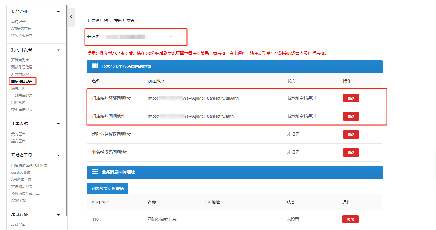 门店映射回调地址:https://域名/?s=/ApiMeiTuanNotify/auth(例:https://zsdc.net/?s=/ApiMeiTuanNotify/auth )