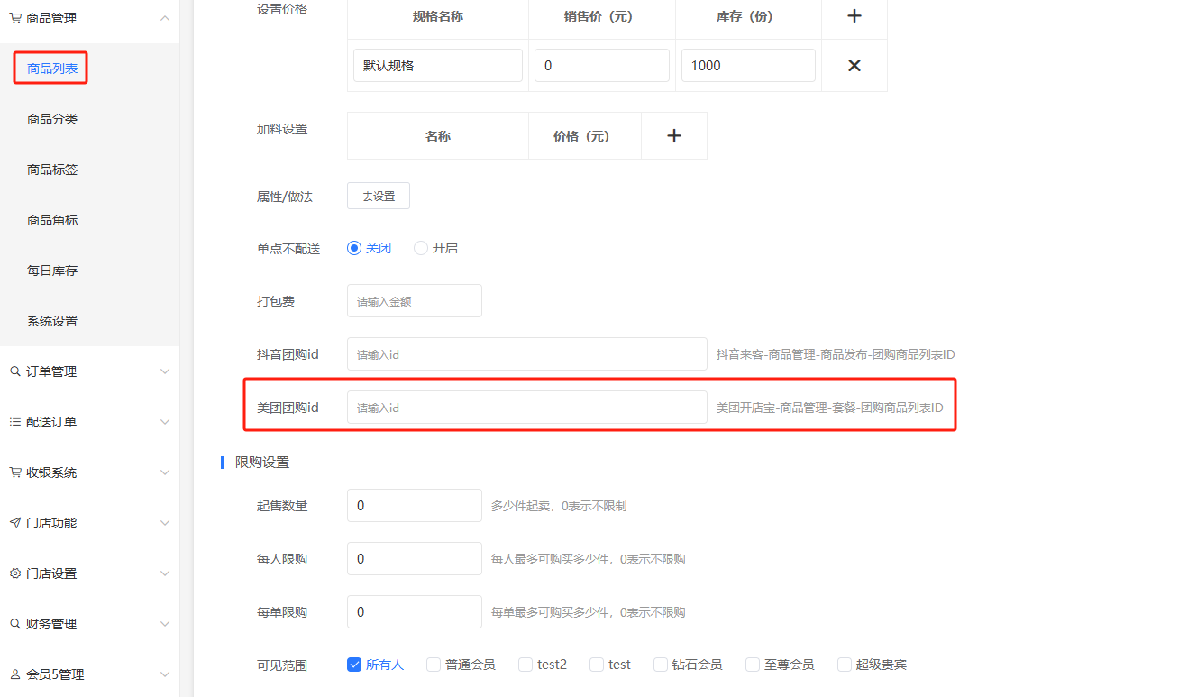 4.2 商品关联:如果是团购券,需要把美团商品和餐饮系统的商品做关联