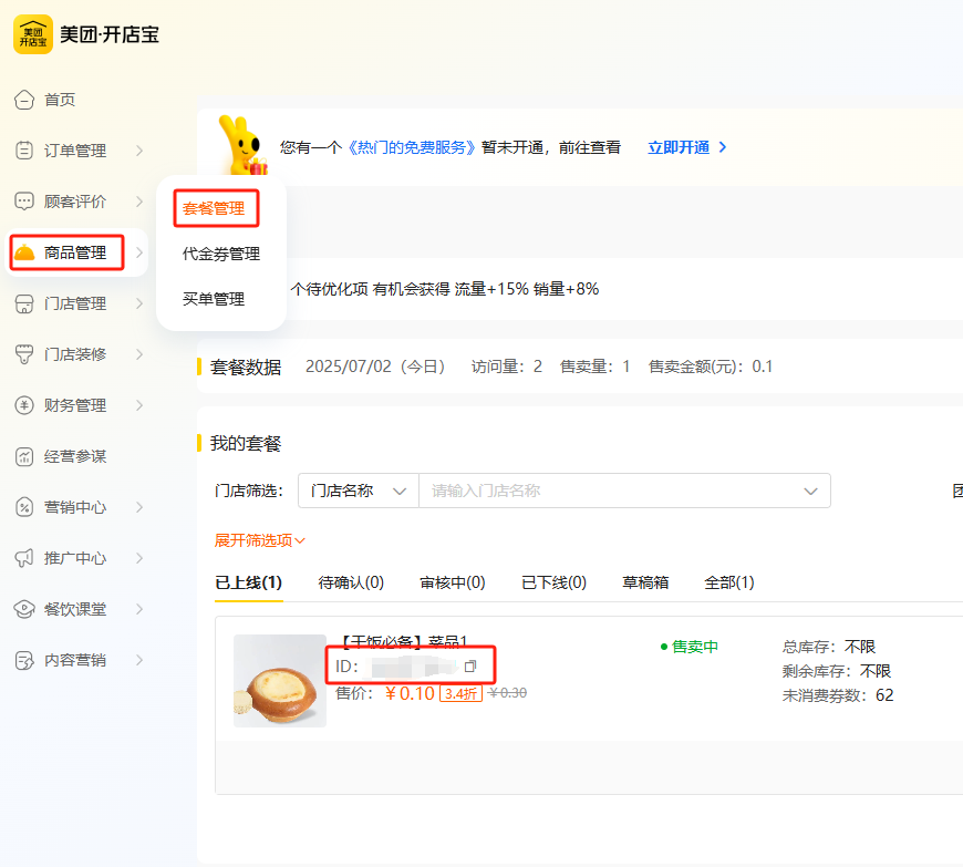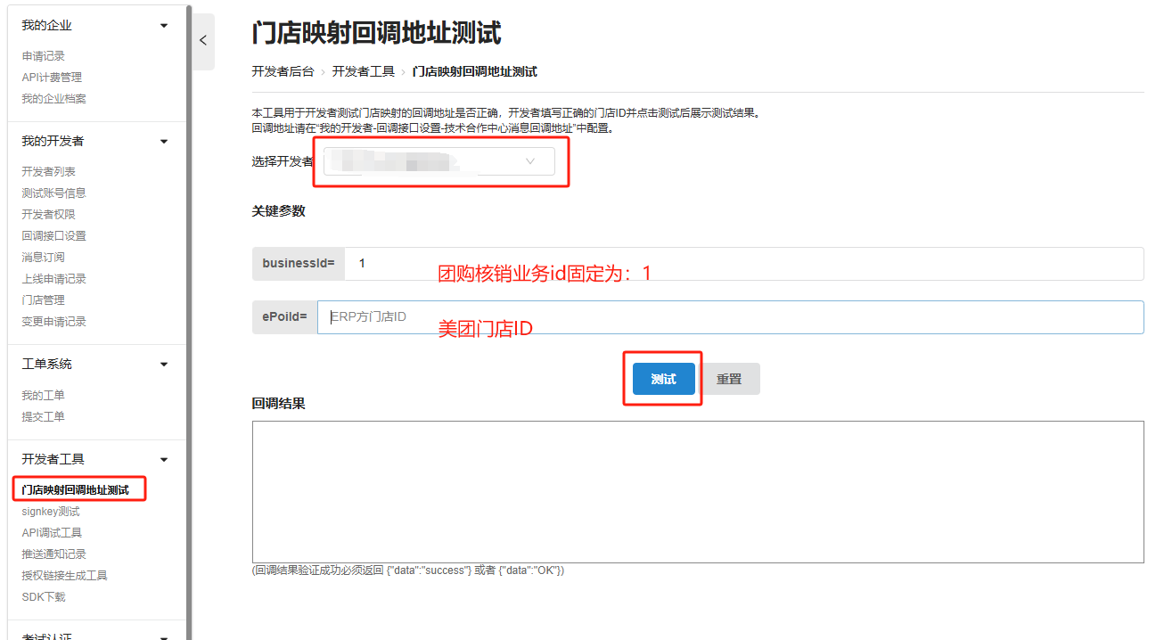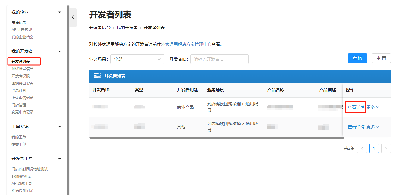 开通到店餐饮团购核销业务并申请开发者后,前往美团控制台