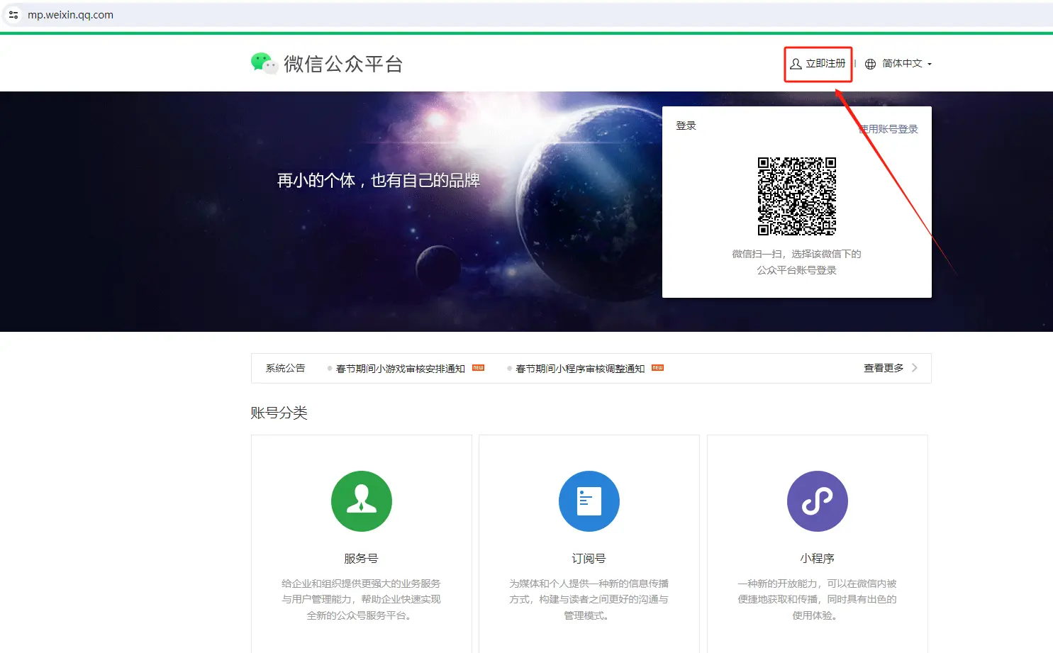 注册地址:微信公众平台