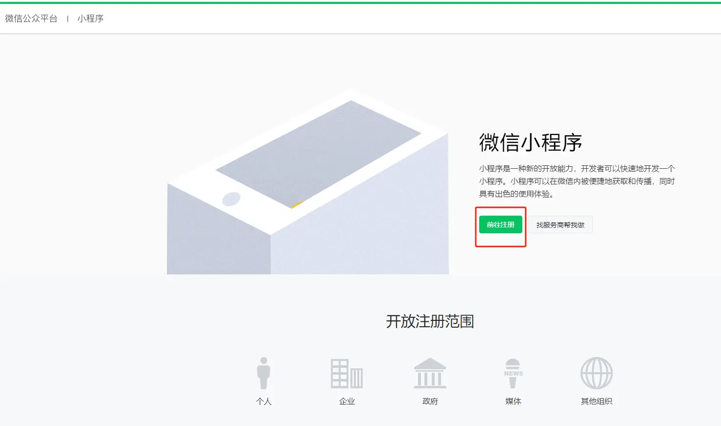 方式三:前往微信公众平台注册