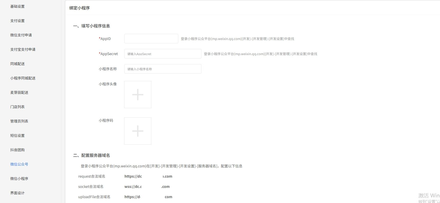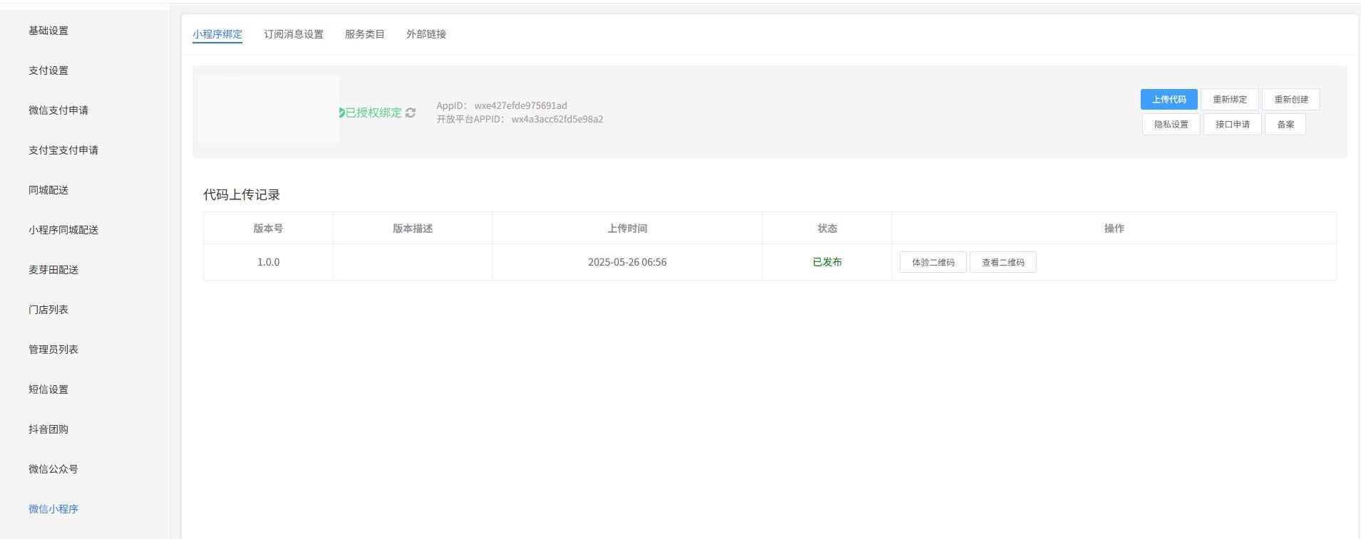 进入用户端,点击系统设置-微信小程序 进入绑定页面