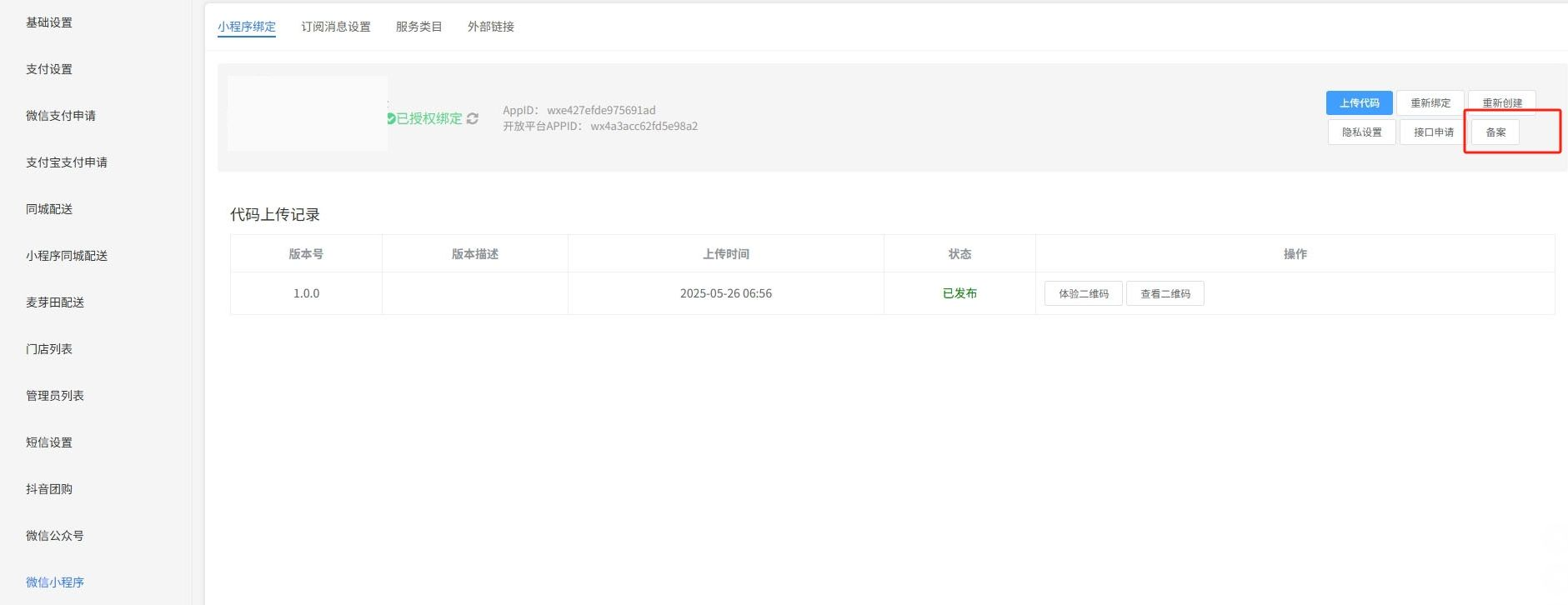 微信小程序备案--仅授权绑定的小程序支持在后台进行小程序备案