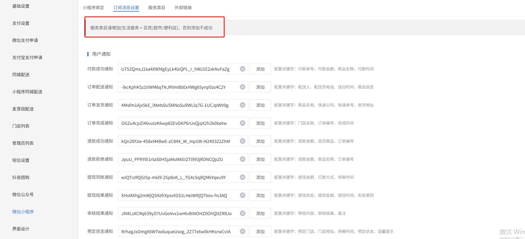 注:服务类目系统后台有提示