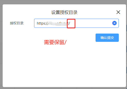 4、设置授权目录。对应我们平台的域名。域名后需要保留 / 。