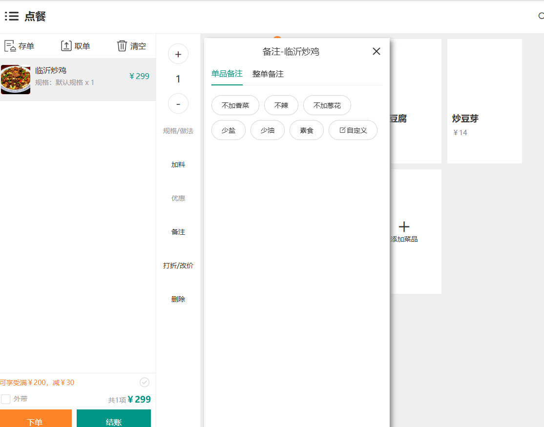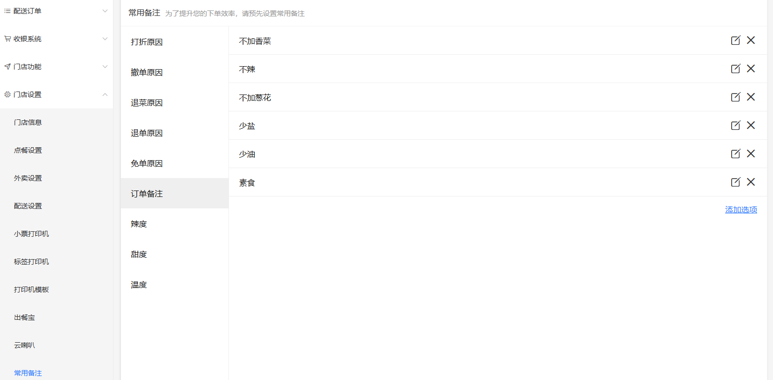 常用备注,在收银台订单操作中,方便直接勾选使用