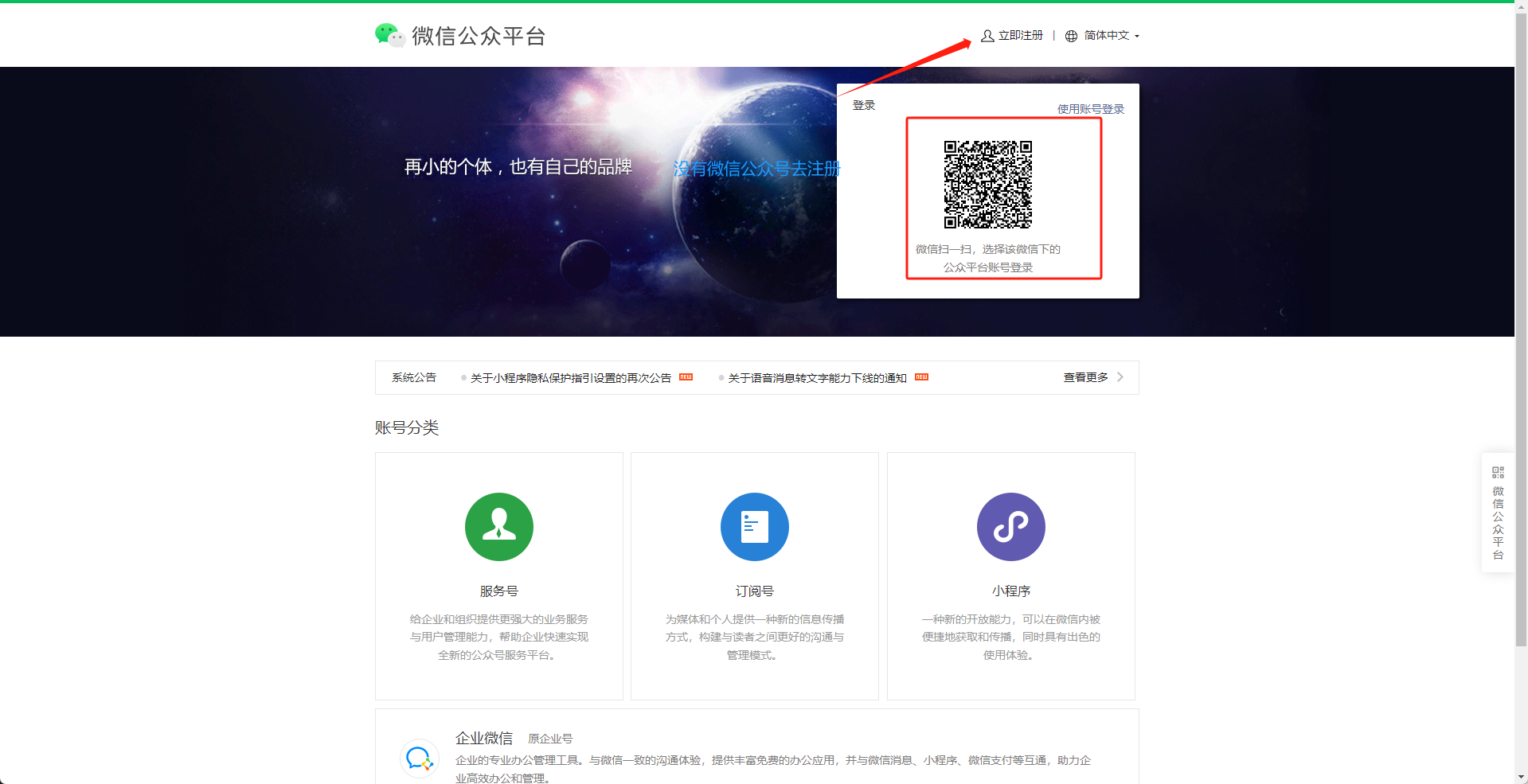 登录微信公众平台,扫码登录,没有公众号的话需要先注册一个。