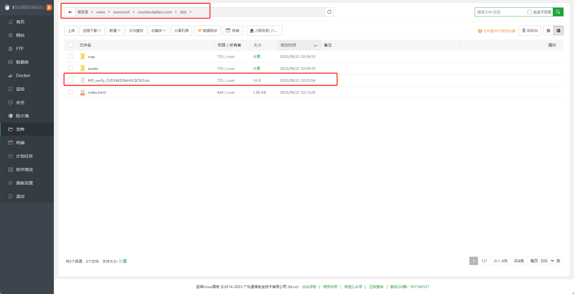 下载的验证文件传到 你的网址路径/dist 中